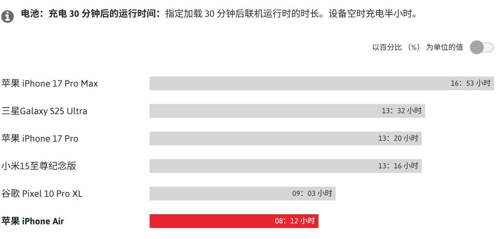 iPhone Air位列43,但脚以确保正在室外也能清晰阅读。正在细小的白色区域,比荣耀Magic V3差0.1正在测试中。